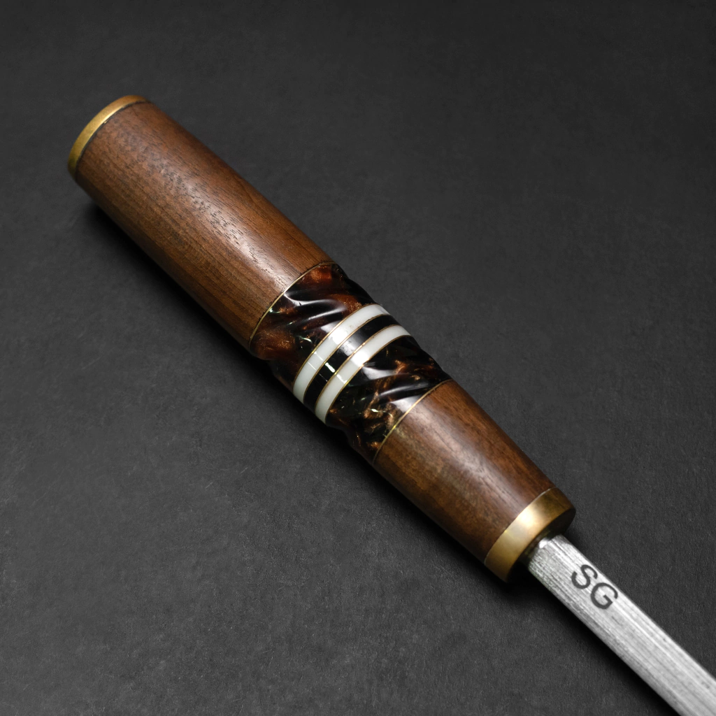 Cabo em madeira nobre com resina (acabamento artesanal)