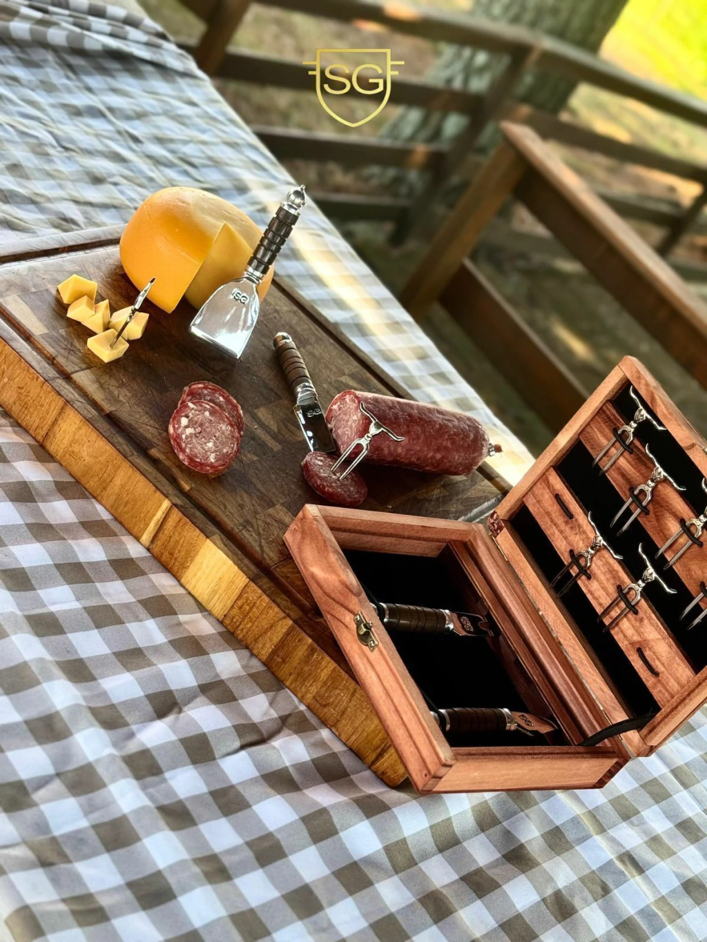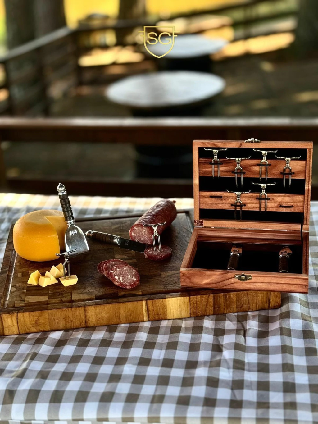 Um kit refinado que combina elegância e praticidade para cortes perfeitos de queijos e frios. O Conjunto SG Formaggio acompanha uma caixa de madeira que valoriza a apresentação e transforma qualquer ocasião em uma experiência única.