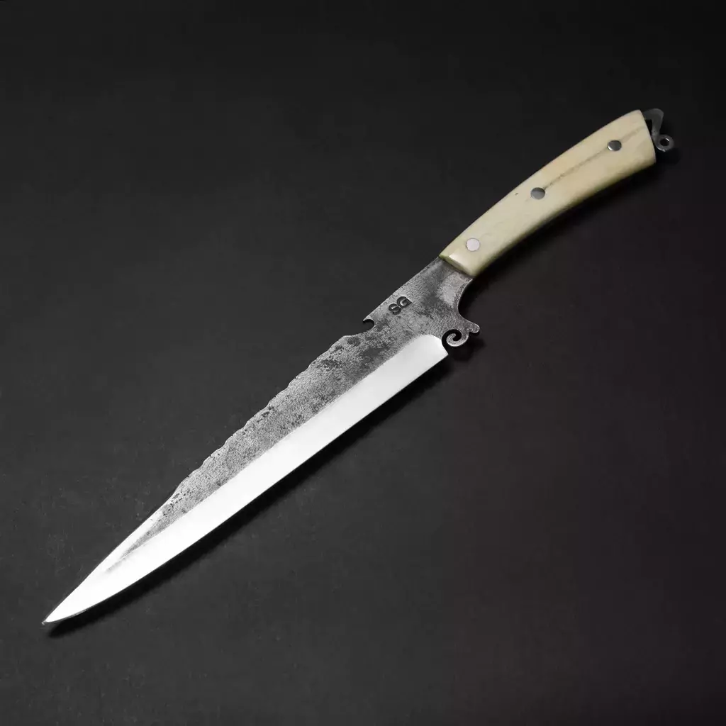 Com lâmina em aço carbono tratada, espessura de 3 mm e cabo em osso natural, essa peça une rusticidade e precisão, sendo ideal para cortes médios e tarefas do dia a dia.