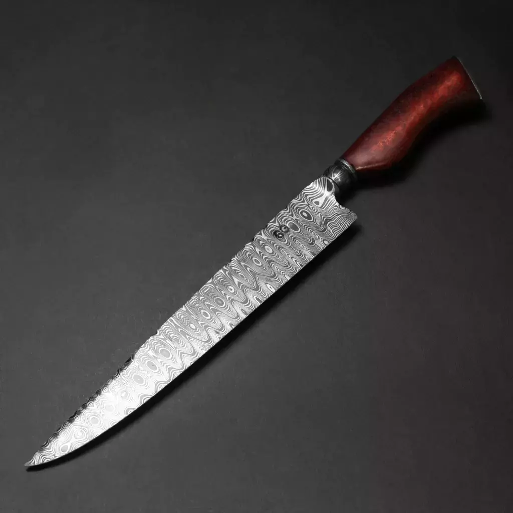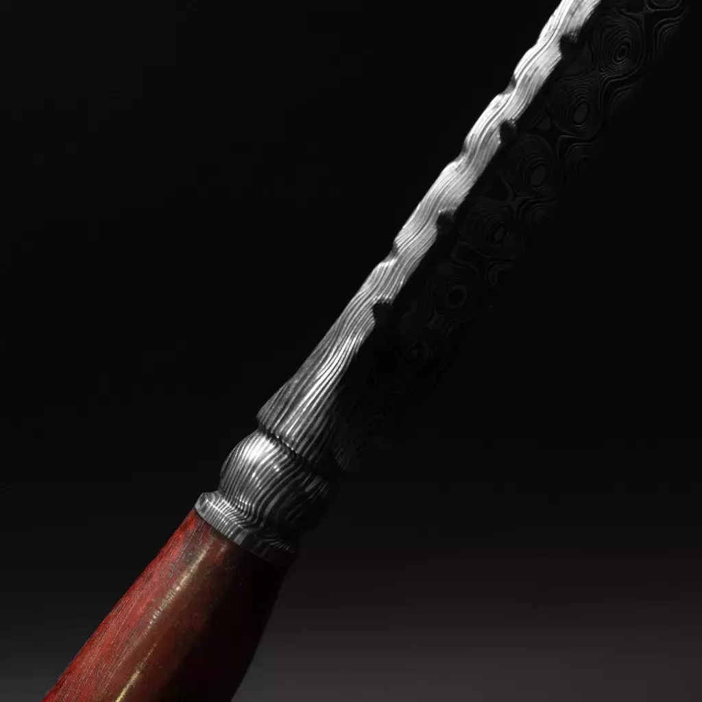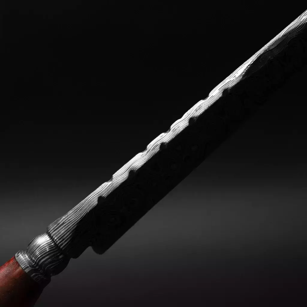Além da beleza inconfundível, a peça entrega desempenho de alto nível: espessura de 5 mm, retém o fio por muito mais tempo e proporciona cortes limpos, robustos e precisos. O cabo artesanal é ergonômico e elegante, garantindo firmeza e conforto até nas tarefas mais exigentes.