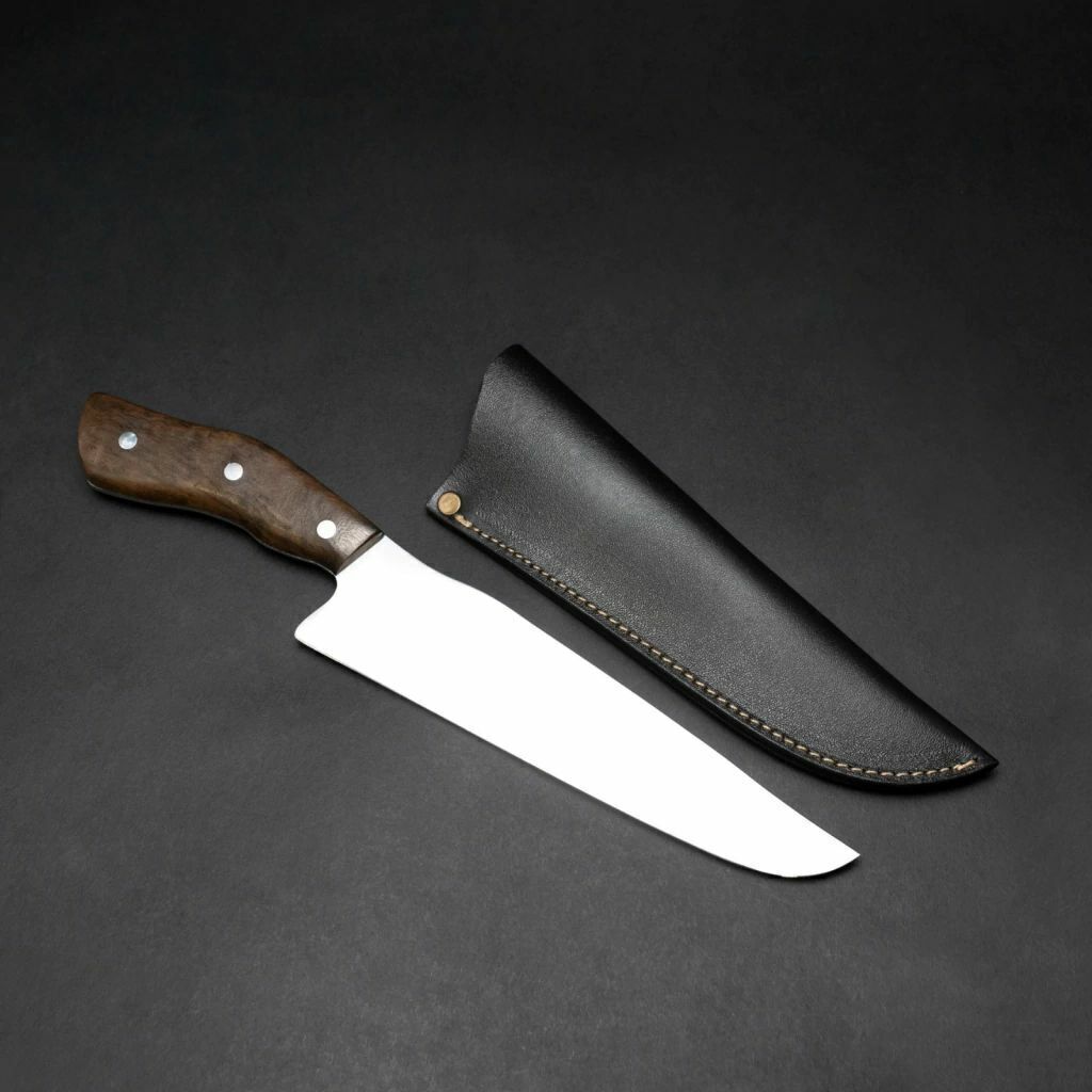 Com lâmina de 10 polegadas (25 cm) e 2 mm de espessura, é feita em aço inox 420C, garantindo alto desempenho, fácil manutenção e resistência à corrosão. O fio se mantém afiado mesmo em uso contínuo.