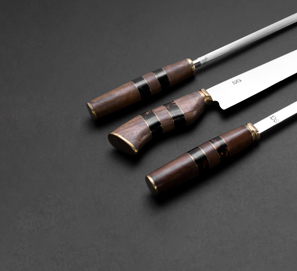 Tri Conjunto Caixa de Madeira é a solução completa para quem busca qualidade e praticidade na cozinha. Este conjunto inclui uma faca, uma chaira e um garfo, todos disponíveis nos tamanhos de 8’’ e 10’’.